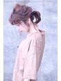 後れ毛をルーズニ残してトップから2段くるりんぱをし、3段目で普通にポーニーテールを作る。3段目の結び目を消すように余った毛束を巻きつけてピンで留めれば出来上がり♪
