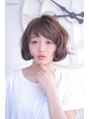 アゴラインのボブベース。バングは巻いて眉がチラ見えする長さにすることでスッキリ感が増す。カラーはブラウン系でナチュラルに透明感を出す。パーマはトップから平巻きでふわふわになるように。