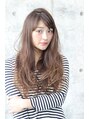 胸下でベースを作り、バングは目に少しかかる長さでカット。カラーはアッシュベージュで、ロングなのに重く見えない透明感を演出♪
