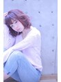 アゴと鎖骨の間のミディアム。バングは眉ラインで重めに。カラーはチェリーピンくでツヤ感を!パーマで動きを出すと日々のケアが楽になります♪