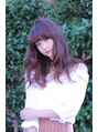 胸にかかる長さのロングで、前髪は左に流しやすいようにCut。カラーはピンクブラウンで透明感を!魔法のデジタルパーマで耳横からウェーブを出すとまとまりやすくなる♪