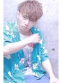 men'sツーブロックスタイル☆アイロンを使ってwave感を出してストレートよりも動きのあるスタイルに!カラーはシナモンベージュでカラーのいける限界まで明るくしてます!
