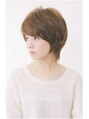 ショート、ボブはお任せ下さい☆☆丸くふんわりなボリュームと、ほほを引き締める前髪の 2つのカットをミックスした『小顔ショート』☆毛先にワンカールパーマを施し、さらにボリューム感をアップさせています♪カラーはミルクベージュで上品な明るさに◎