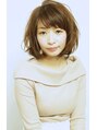 大人可愛いふんわりカールボブ。前上がりがりにカットしトップにレイヤーをいれているのでまとめやすく簡単スタイリング。カラーはメルティベージュカラーで甘さと透明感を。