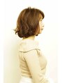 大人可愛いふんわりカールボブ。前上がりがりにカットしトップにレイヤーをいれているのでまとめやすく簡単スタイリング。カラーはメルティベージュカラーで甘さと透明感を。