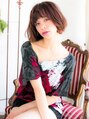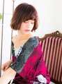 『小顔の計算高い無造作感』顔周りはラウンドにカットして小顔を狙い、前髪は目ラインギリギリにカットして目力をUP♪小顔に大人かわいい前下がりボブ!似合わせカットとルーズな無造作でくせ毛風ワンカールパーマで簡単スタイリング♪