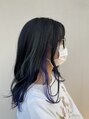 巻いても、おろしても、シルエット綺麗!!ロングスタイル!ダークトーン+ブルーヴァイオレット系インナーカラーの組み合わせは、お洒落そのもの!オールシーズンおすすめのカラーリング!