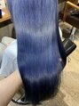 根元のリタッチ+毛先の残留もとりつつ作るアイスブルーカラーです!ロングのブルーカラーはストレートはもちろん、ふわふわに巻いても可愛いですよ!
