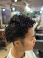 ハード系のパーマなのにセンター分けができるようにかけてみました!いい感じにカールが出ました!ツイストパーマ,ツイストスパイラル,波巻きパーマ,ワンカール,メンズパーマ,スペインカール,クセ毛風パーマ,カルマパーマ,ダウンパーマはお任せください!