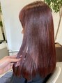 △ブリーチなし韓国風チェリーレッド髪質改善ストレートヘア