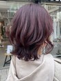 △大人可愛いピンクパープルレイヤーカット外ハネロブヘア