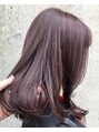 △ブリーチなしピンクブラウン外ハネロブヘアミディアムヘア