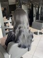 ブリーチ無しで出来る♪透明感抜群ブルーアッシュカラー!5レベルくらいのこのお色味は、室内では暗髪で光に当たるとブルーグレーのお色味が綺麗に発色します♪就活や社会人の方にもとってもオススメのカラーになっております!是非ご予約お待ちしてます!
