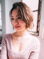 ショートボブスタイル カラーは大人可愛いナチュラルブラウンで柔らかい印象に。 顔まわりに軽めのレイヤーを入れることによって、小顔を作っています。 前髪をかきあげることによってより大人っぽい印象がでます