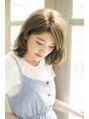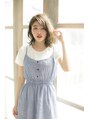 無造作な質感を出したラフミディ。シンプルなAラインシルエットのミディアムを崩した束感を出すことでフェミニンなカジュアルスタイルに。