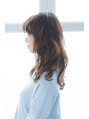 ミディアムレングスに空気感が入るようにドライブカットで柔らかさとまとまり感を出しましたカラーはレディベージュでカラー