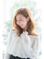 ナチュラル感のある好感度ミディアムラベージュカラーで柔らかさとほつれ感を出しました26ミリのコテでランダムに巻いてスタイリング