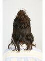 ダークトーンのブルージュアッシュで派手すぎずナチュラルに。外ハネミックスな感じにふんわり巻きました。MOIのバームタイプのスタイリング剤でセミウェットに仕上げ『抜け感』を演出。