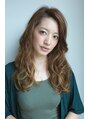 前髪をつくっていないAラインシルエットのセミロングスタイルです。カラーはアッシュグレージュで透明感が強調される色味です。バックはほぼワンレングスですがトップと顔まわりはレイヤーが入っていますのでカールによるラフな動きが出やすくなってます。