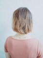 今流行りの透け感ボブ!全体的には重ためなのですがレイヤーを入れてあげてるので、透け感の出る印象です。顔周りはしっかり流れるように切っているので、センター分けにして大人な印象を演出させ今どきのスタイルです!