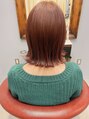 ぱつっと外ハネボブ☆小顔に見えやすい長さ、骨格に合わせてカットしています。つやと色もちのいい暖色カラーのヘルシーオレンジでアクセントをプラス