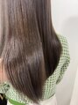 広がる髪質を縮毛矯正でおさまりあるストレートに。毛先の柔らかさは酸性ストレートならでは◎カラーはラベンダーベージュで柔らかなくすみ感をプラス☆