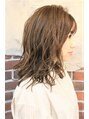全体に細かく入れたハイライトが、巻いた時などにチラチラっと見えて立体感を出して見せてくれます!!あんまりキメすぎない、ラフな感じでくしゃっとスタイリングするのがとってもかわいいミディアム♪トップから無造作に落ちる毛が◎!