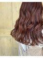 温かみのある髪色は赤茶でかなえます!暖色系でも茶色が混ざっているだけで持ちが良いのでおすすめです☆カットは段さをつけすぎないように重めに。ツヤ感をキープする為毛量調整も極力少なめに。