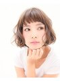 丸みのあるフォルムの中にウェーブを入れキュートなボブスタイルに♪大人可愛オンまゆでお洒落ポイントも押さえておいて♪目元に視線が集中☆長さの調整で大人っぽくも可愛らしくも出来ますよ♪カラーはハイトーンマーメードベージュでピュア感たっぷりに☆