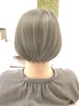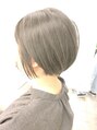お客様スタイル♪前下がりショートボブでサイドの長さは顎レングスで設定☆襟足のうき癖がありますが中を短くして被さる髪を長めに設定し浮きくせを収まり良くカットしております。中間から毛先に毛量調整しハンドドライで収まるように計算したスタイルです♪