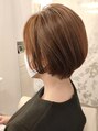 スッキリとした印象に♪リップラインの前下がりショートにアプリコットベージュで深みのあるツヤを表現☆マフラーやストール、ニットなどボリュームある物を身につけても首元がスッキリとして見えるバランスに♪