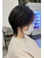 襟足を少し長めに残したウルフショートスタイルに顔まわりのブリーチオンカラーでワンポイントアクセントをつけたオシャレスタイルです。