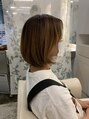 ボブに襟足のみ段をつけて前下がりの雰囲気を出したスタイル。重すぎないボブが好みの方におすすめです。