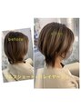 ショートのバレイヤージュスタイル。根本は暗めに設定してコントラストを強調させておりま。カットは少し襟足を長めに残したソフトウルフスタイルに。