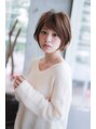 ふんわりかわいいひし形シルエットで王道小顔ショートヘア。流れる短めの前髪でよりかわいらしい印象になります。スタイリング簡単。ショコラブラウンで甘めに!担当者が可愛く似合わせます!カラーは人気のイルミナカラーがオススメ!ローダメージで透明感!