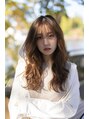 大人可愛いロングウェーブスタイル!大きめのカールがポイント。32ミリのコテでミックス巻きか、デジタルパーマで!マロンベージュで柔らかく!