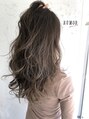 ダークトーンでも透け感たっぷりのスモーキーベージュ!バレイヤージュカラーでしっかりムラ感を作って、ナチュラルな外国人カラーに!赤みや黄味をしっかり抑えてくれて、女の子らしい柔らかさに包まれる色に!ツヤが生きるように、カットの削ぎは最小限に。