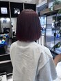 後ろ姿まで美しい艶ボブ。毛先までなめらかな質感で、光を受けて輝くワインレッドカラー。シンプルだからこそ差がつく大人の艶髪スタイル。