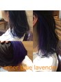 インナーブルーラベンダー黒髪からのブリーチ回数 2回おすすめシーズン 夏【こんな方におすすめ!】インナーなので下の位置で纏めれば目立たないので制約がある方でもオフには派手目にしたい方