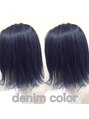 デニムカラー/黒髪からのブリーチ回数2回から3回/濃いブルーグレーがデニムの様に色落ちするので緑に寄らず長く楽しめる。デニムカラーは特殊な技術、薬剤なのでご希望の方は※1週間以上 前からご予約下さい。当日は受けたまわれません。
