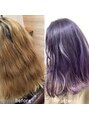 ラベンダーは黄色味を抑えるのでブリーチベースにとてもオススメです!配合によってもう少し紫感をおさえる事も可能です!冬から春にかけて人気のカラーです!