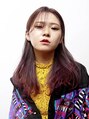 シースルーのバングで色っぽく。毛先にパープルのデザインをプラスしてこの秋トレンドのベイクドカラーに仕上げました。