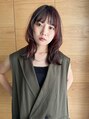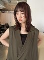 ミディアムウルフスタイル。ワンカールで簡単にスタイリングができるスタイルです!動きが出てて軽い印象になります。カラーは秋に人気なこっくりボルドカラーに