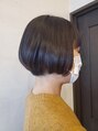 襟足刈り上げのスッキリボブスタイルです。サイドは耳にかけられる長さになっています。スタイルはシンプルにオイルで仕上げました。