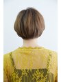 襟足をタイトに仕上げたコンパクトなショートボブ。 頭を小さく見せてくれるのでスタイルアップ効果があります☆ バングを短くすることで顔周りを明るい印象に♪ トップにレイヤーを入れて動きを出しやすくしています。
