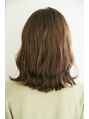 前髪と毛先に動きのあるミディアムロングスタイル☆前上がりのスタイルで顔まわりが短くなるので毛先の動きがつきやすく小 顔効果も!ゆるっとパーマをかけておけば朝のスタイリングはオイルで簡単に!!束間を出したい方はバームでもOK!