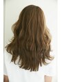 大きめのカールのグラマラスで大人なスタイルです!ロングの大人スタイルは、ブラウン系のツヤがあるカラーリングがオススメです。センター分けにリバース巻きで仕上げます!ツヤツヤな髪が、大人女性の印象にしてくれます!