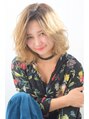 重ためのワンレングスボブに、耳上からコテでランダムに巻いてくせ毛風にっ仕上げました!!! 毛先は内巻きと外巻きにして動きを出すととても可愛く元気な感じに♪ ハイトーンなので重くても重たく見えないのがGOOD☆☆