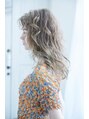 全体的に大きめのウエーブを作りふわっとさせエアリー感ミディアムスタイルです。 センターパートで分けているのでガーリーになりすぎない大人の女性感をだしています。 春夏にピッタリなさわやかなスタイルです☆