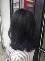 全体的に動きうをつけ、くびれをふんわり付けたナチュラルなレイヤースタイル!ダークトーンでも透け感が楽しめるブルーブラックカラー。派手になりすぎず、上品に仕上げました!